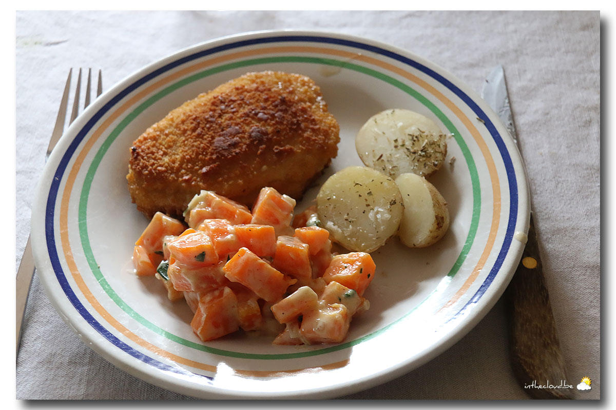 Lorsque la cuisson de la potée est terminée, égoutter et remettre les ingrédients dans le bol. Épicer de sel & poivre. Ajouter l’œuf et un peu de lait. Remettre le bol dans le robot et installer le batteur K. Faire tourner à la vitesse 2 en arrêtant de cuire.