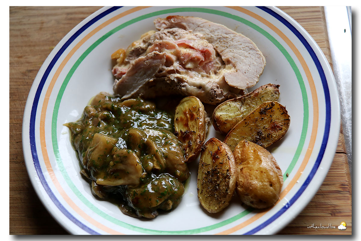 Coupez le rôti en tranches épaisses et servez la sauce séparément. Accompagnez de grenailles cuites au four.