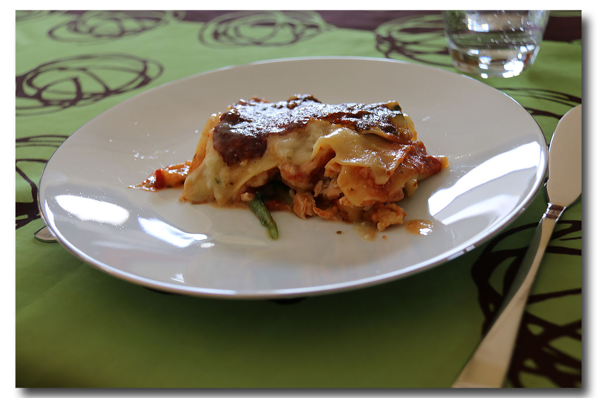 Composez la lasagne : couvrez le fond d’un plat à four profond avec la moitié des tomates concassées, puis disposez des feuilles de lasagne côte à côte par-dessus (sans les faire se chevaucher), les morceaux de saumon et la moitié de la sauce à l’oseille. Ajoutez à nouveau des feuilles de lasagne, le reste des tomates concassées, les écrevisses, la moitié des tranches de mozzarella et les rondelles de tomate. Formez une dernière couche avec des feuilles de lasagne et le reste de sauce à l’oseille. Terminez par les tranches de mozzarella restantes.
