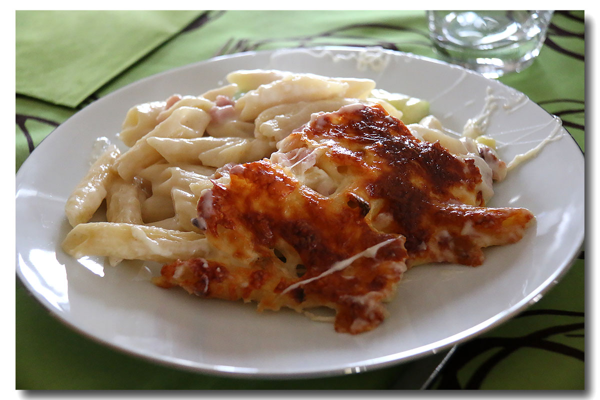 Faites chauffer l’huile d’olive dans une casserole et faites-y revenir l’oignon émincé jusqu’à ce qu’il soit translucide. Ajoutez-y les lardons fumés et faites-les rissoler pendant 3 min, en remuant.