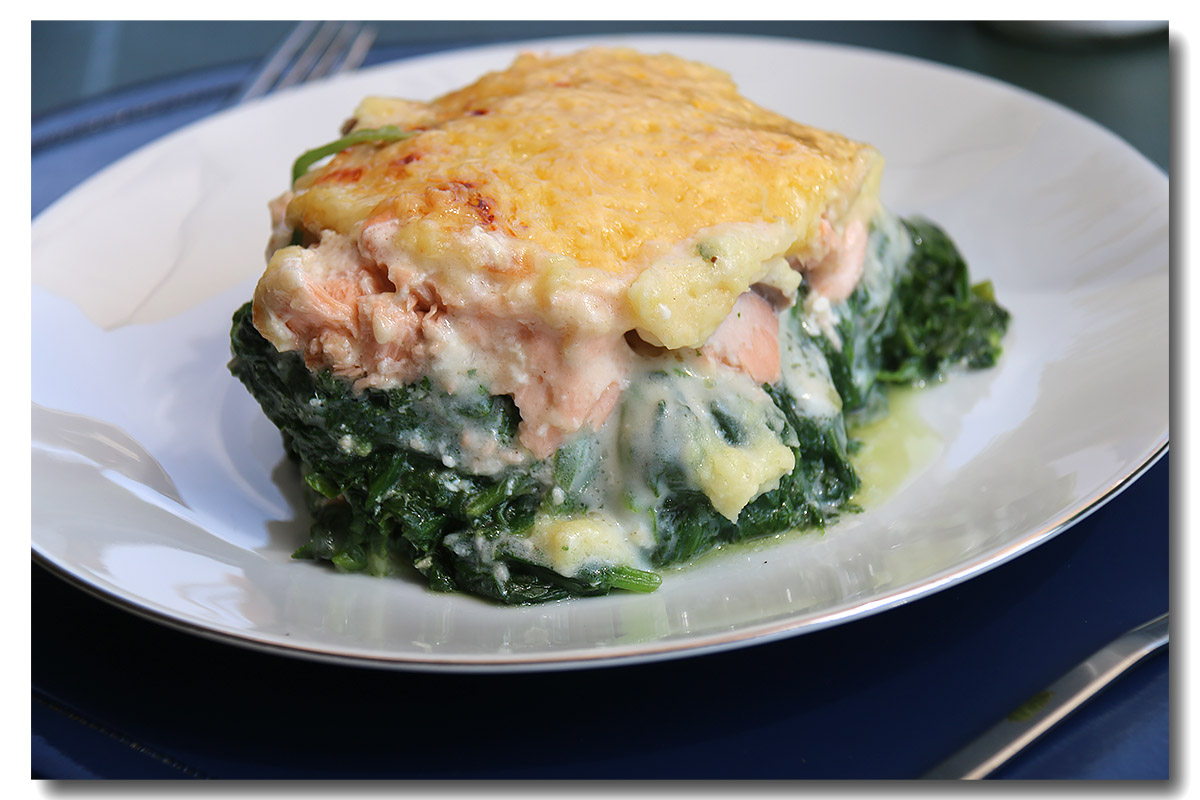 Graissez un plat à four avec 1 c. à soupe de beurre et transvasez-y la purée. Couvrez avec les épinards et déposez le poisson par dessus.
