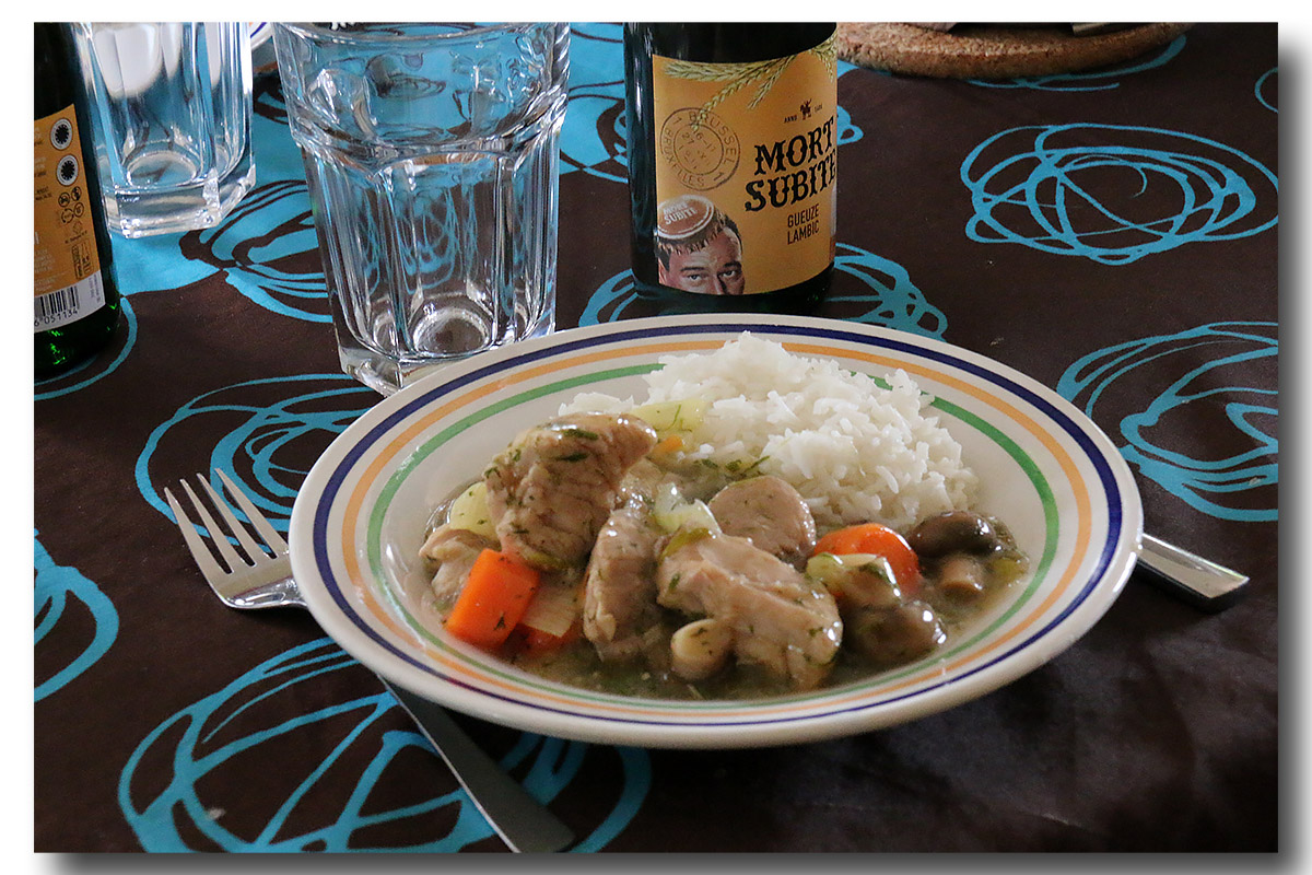 Répartissez la blanquette et les légumes sur les assiettes et nappez de sauce à la gueuze. Servez avec du riz et parsemez de persil ciselé.