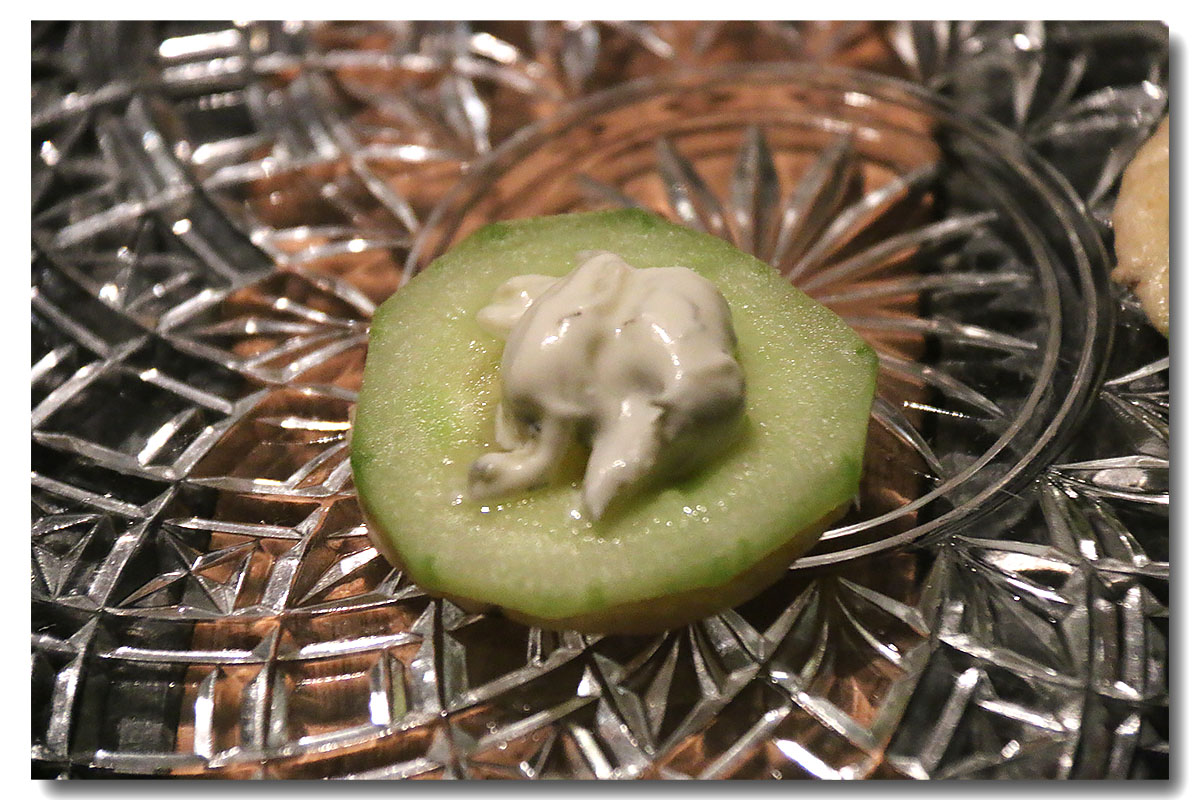 - Mettre une tranche de concombre sur chaque crakers et une petite cuillère de Tzatziki
