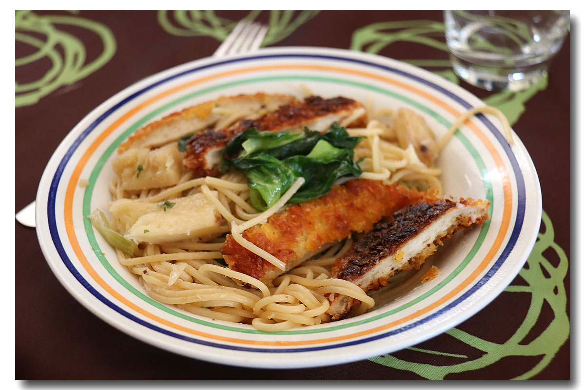 Faites chauffer 2 c. à soupe d’huile de riz dans une poêle et rissolez-y les croquants de poulet pendant 5 min.
