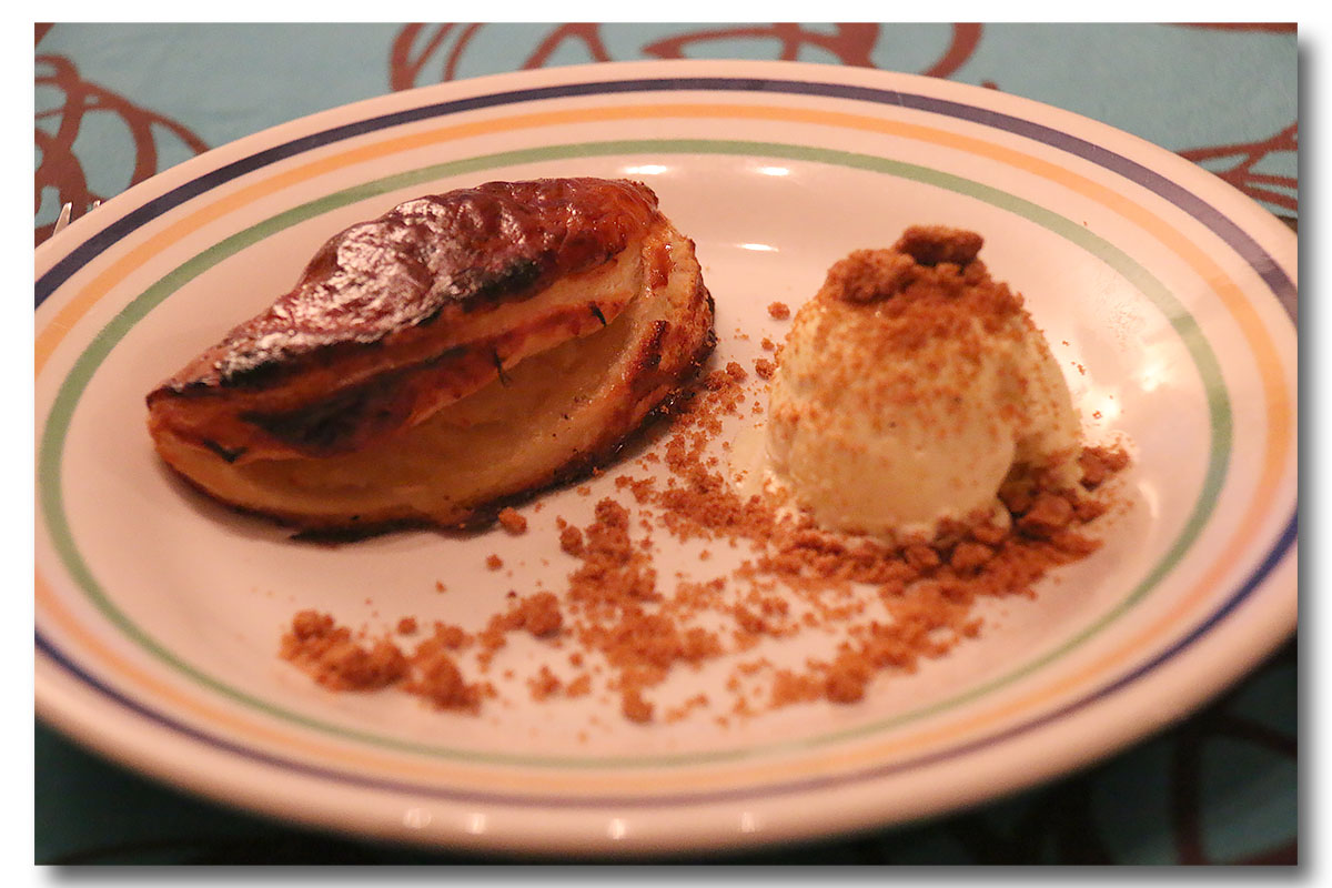 Retirer du feu et broyer le tout avec une cuillère le plus finement possible. Ne pas utiliser de mixeur. Ce serait moins bon et ce serait plus difficile à contenir dans le chausson. Ajouter la cannelle et le sucre selon son goût.